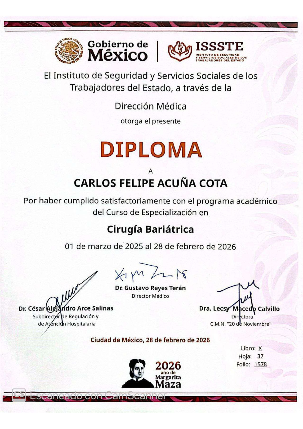 Estoy profundamente agradecida con mi bariatra por cambiar mi vida de manera tan positiva. No solo es un gran profesional, sino también una persona humana, respetuosa y siempre disponible para orientar y motivar. Me he sentido acompañada en todo momento y eso hace una gran diferencia. Gracias por su compromiso y dedicación.